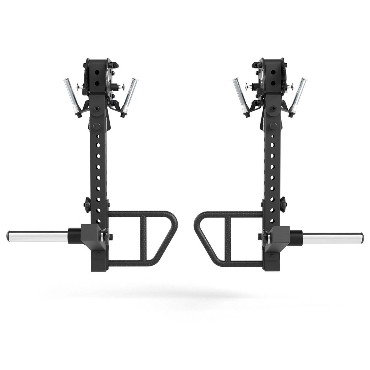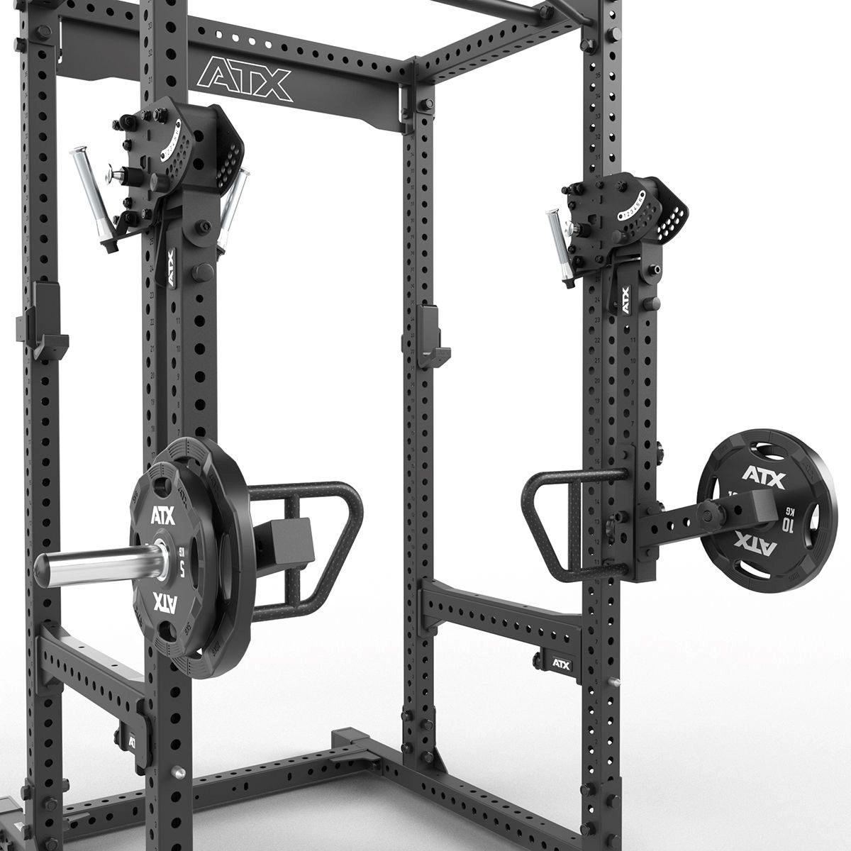 De ATX 3D Jammer Arms RRL-700 veranderen jouw rack of rig in een veelzijdig leverage-gym toestel met maximale bewegingsvrijheid. Ze zijn speciaal ontworpen voor de 700 serie racks en combineren Duitse precisie-engineering met een robuuste, duurzame constructie. Dankzij de verstelbare roller-functie met kogelgelagerde looprollen, een dubbel handvat en vergrendelpin kunnen deze Jammer Arms eenvoudig in hoogte worden versteld. Dankzij de 3D functie kunnen deze Jammer Arms ook naar links en rechts kunnen bewegen, zowel in een gefixeerde positie als vrij schommelend. De armen zelf zijn 12-voudig verticaal en 6-voudig horizontaal verstelbaar, wat zorgt voor een groot bereik aan bewegingsopties. Een magneetpen garandeert een veilige en snelle vergrendeling. Met de Weight Horn, die eenvoudig met schroefknoppen kan worden aangebracht of verwijderd, kan de krachtcurve bij veel oefeningen merkbaar verbeterd worden. De Weight Horn verplaatst het gewicht namelijk naar voren, zodat er onderin de beweging eerder spanning wordt gevoeld. De multi-grip handgrepen met diamantreliëf zorgen voor optimale grip en een comfortabele handpositie, ook bij explosieve bewegingen. Optioneel kunnen de Jammer Arms worden uitgebreid met roterende handgrepen (Rotating Handle) voor nog meer variatie in training. De Jammer Arms RRL-700 zijn gecertificeerd volgens EN 20957 I.II.IV Class S, wat betekent dat dit product geschikt is voor thuisgebruik en professioneel gebruik in sportscholen.