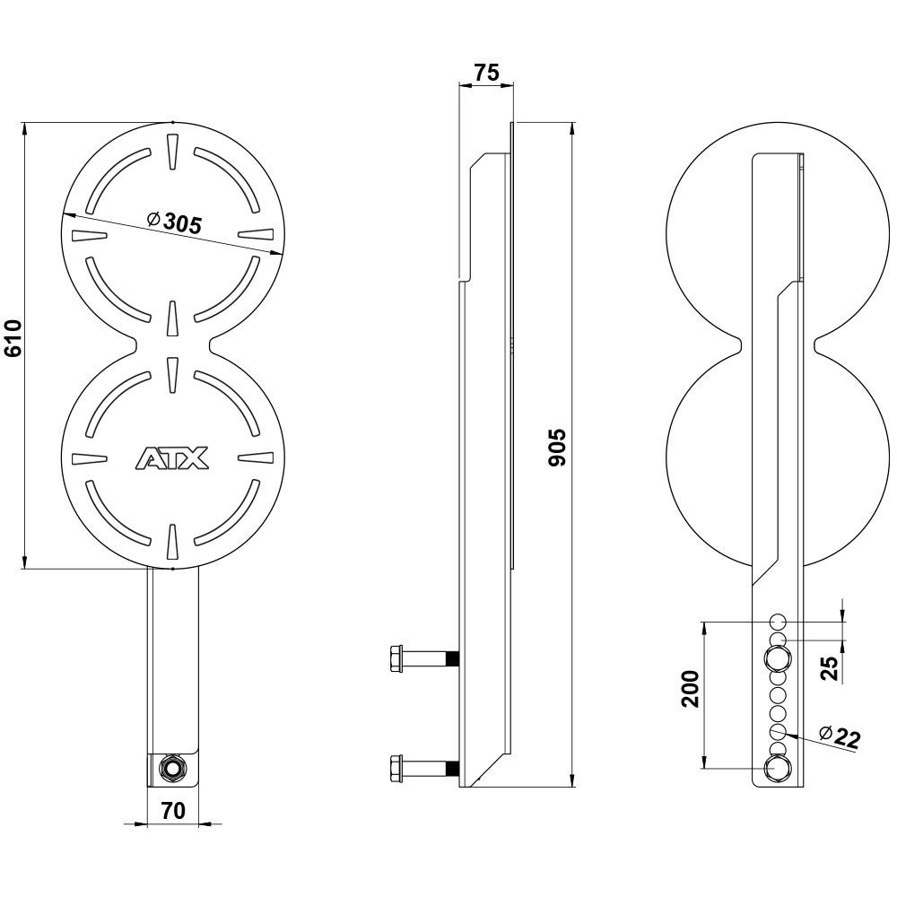 De twee ronde doelwitten (diameter 30,5 cm) zijn voorzien van markeringen met ATX logo.