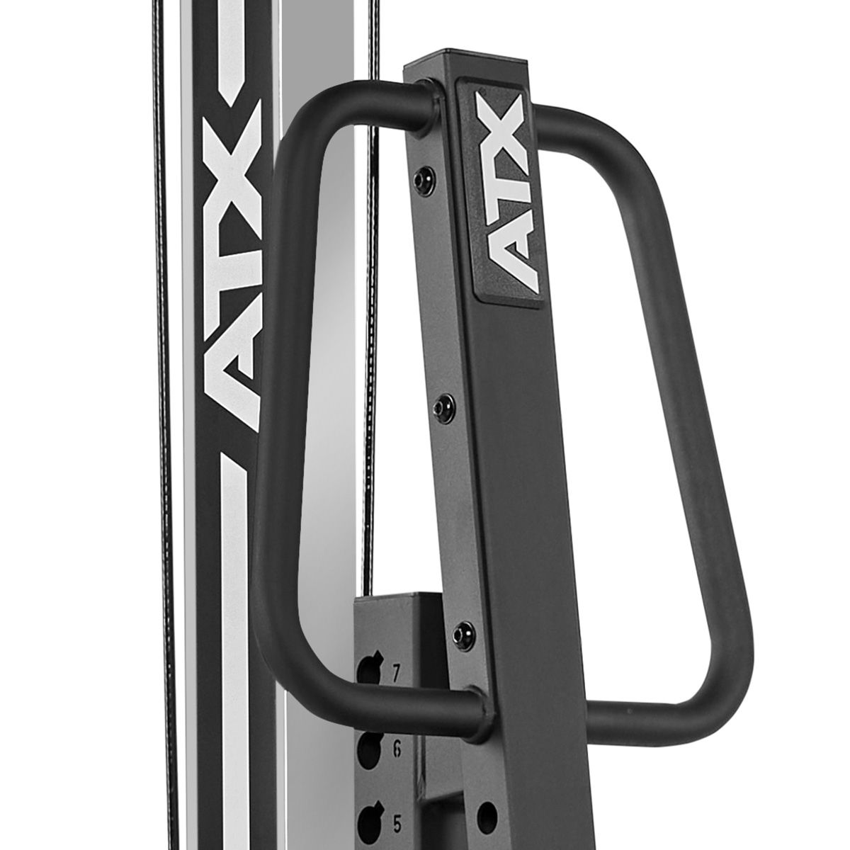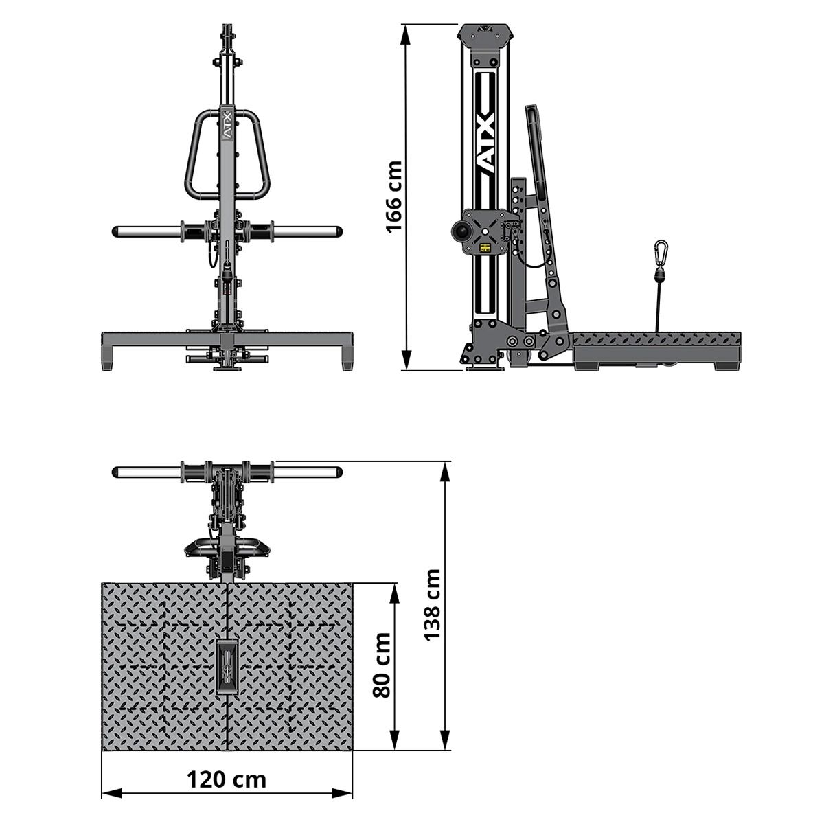 De ATX Cable Belt Squat Machine is een professionele belt squat met een directe, verticale kabelgeleiding. In tegenstelling tot belt squat machines met een hefboom, heeft dit toestel dankzij de verticale kabelgeleiding een directe krachtoverbrenging van 1:1. De katrollen van de kabel zijn verdiept in het platform verwerkt, zodat de beweging extra diep kan worden uitgevoerd en maximale contractie mogelijk is. De belt squat verplaatst het gewicht van de schouders naar de heupen, waardoor de rug en de wervelkolom volledig worden ontlast tijdens het squatten. Het toestel is eenvoudig te bedienen en heeft meerdere instelbare start- en stophoogtes voor gebruikers met verschillende lichaamslengtes. De ATX Cable Belt Squat Machine is Europees gecertificeerd naar EN 20957 I.II.IV klasse S en geschikt voor professionele toepassingen in sportscholen.