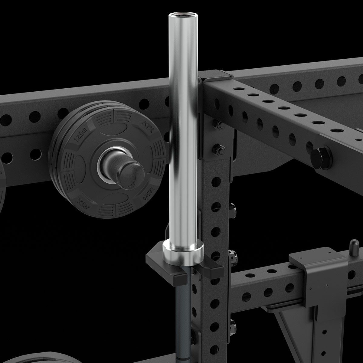 - Dwarsbalk achterin het rack voor het ophangen van de J-hooks en spotter arms