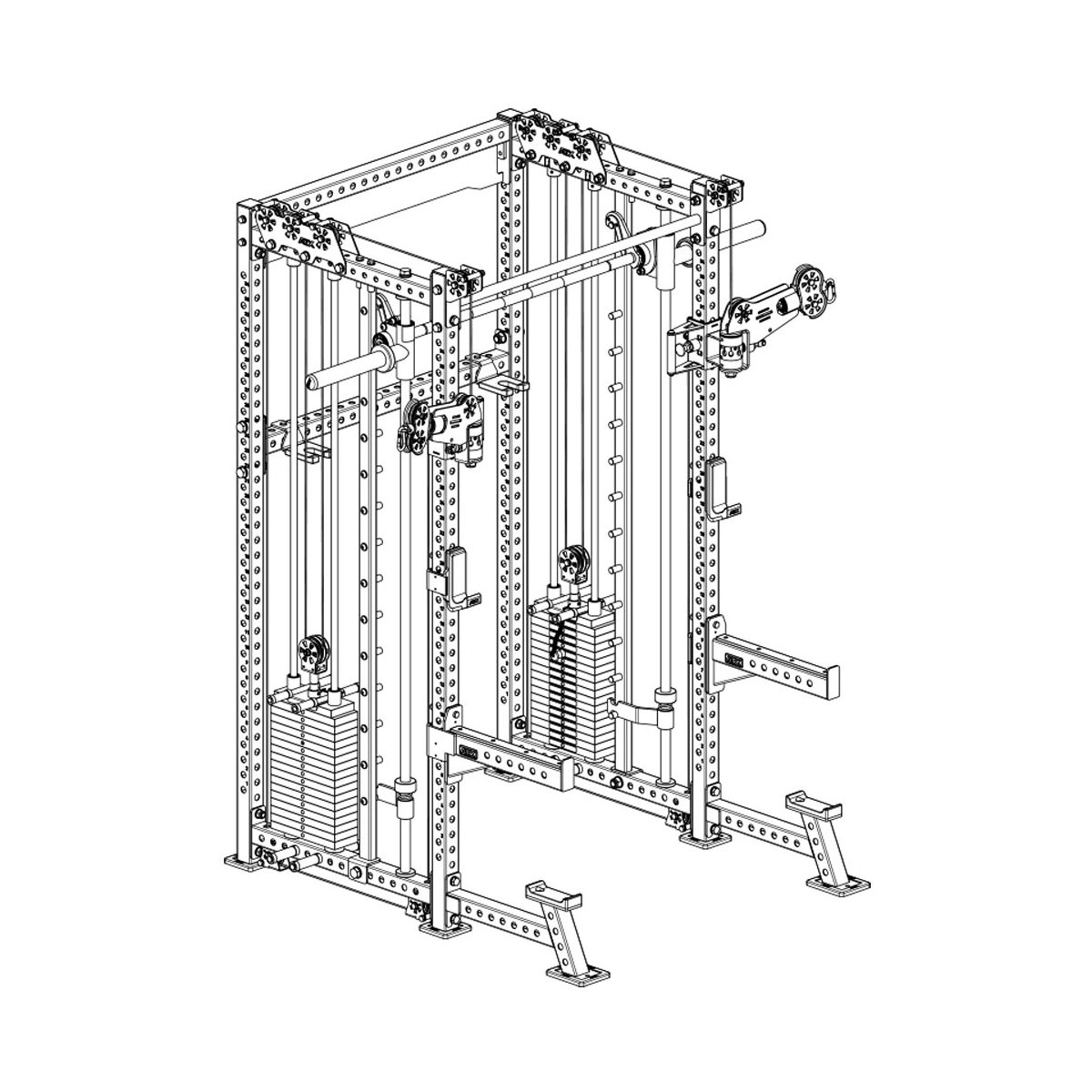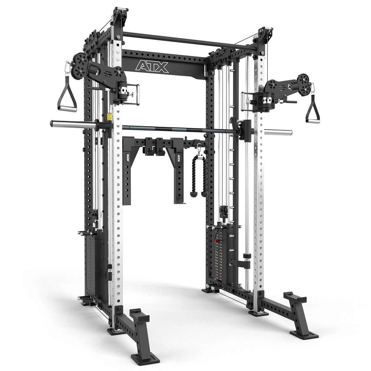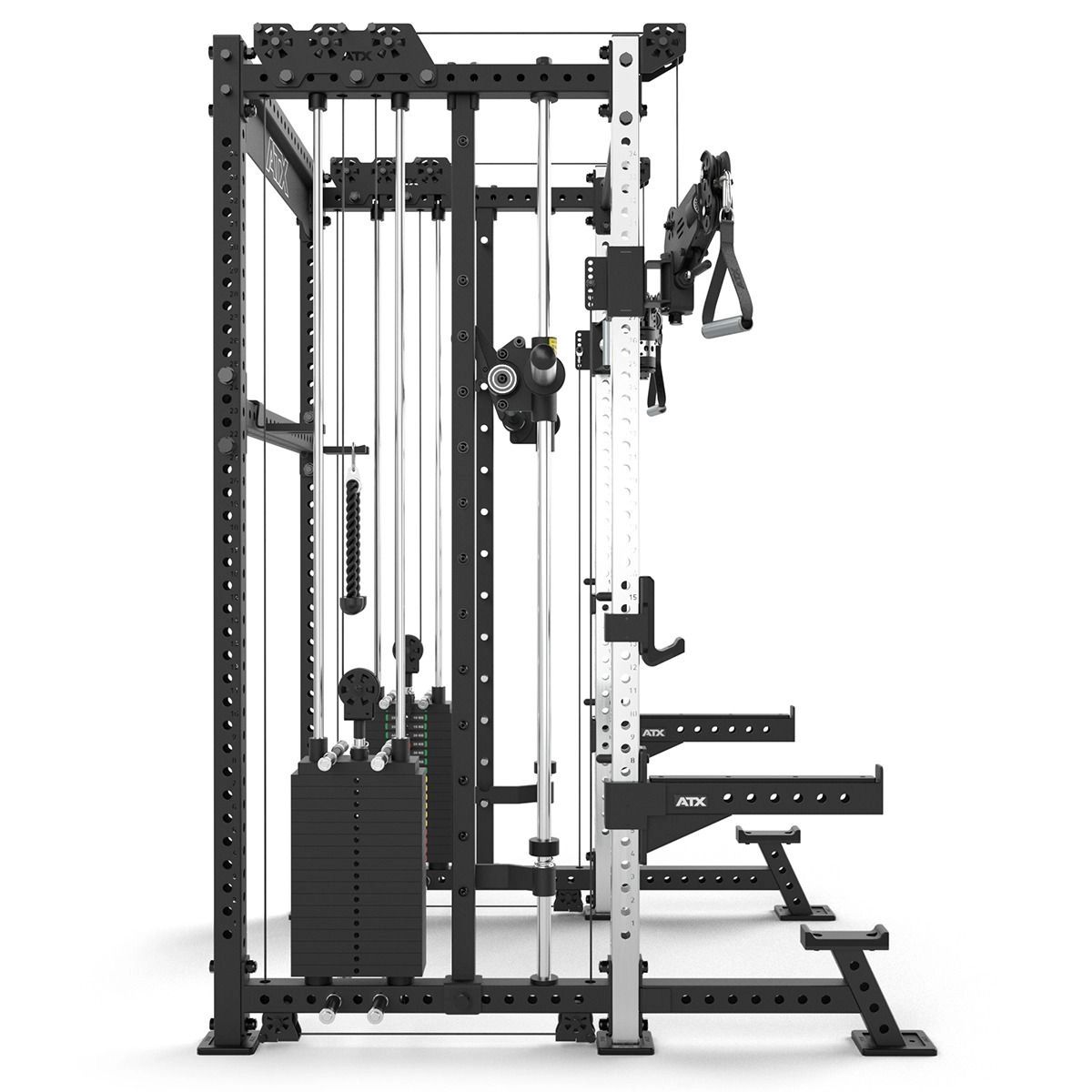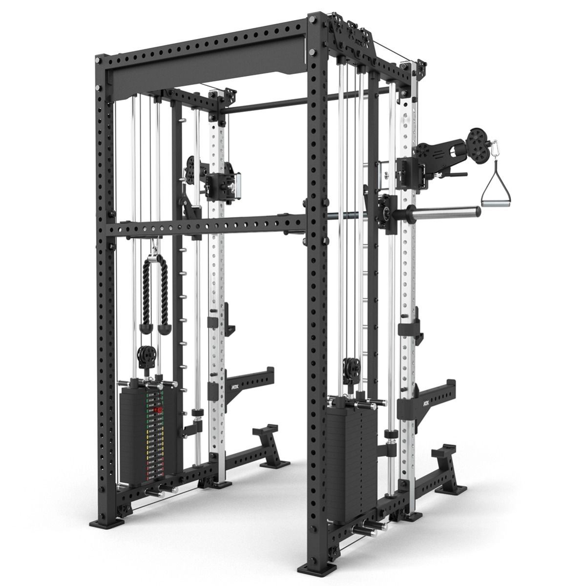 Dankzij de twee onafhankelijke gewichtsstapels van elk 90 kg train je soepel, gecontroleerd en zonder halterschijven te wisselen. Het stevige ATX frame zorgt voor stabiliteit en vertrouwen, zelfs bij intensief gebruik. Of je nu squats, presses, rows of cable fly’s doet: dit rack groeit moeiteloos mee met je trainingsniveau.