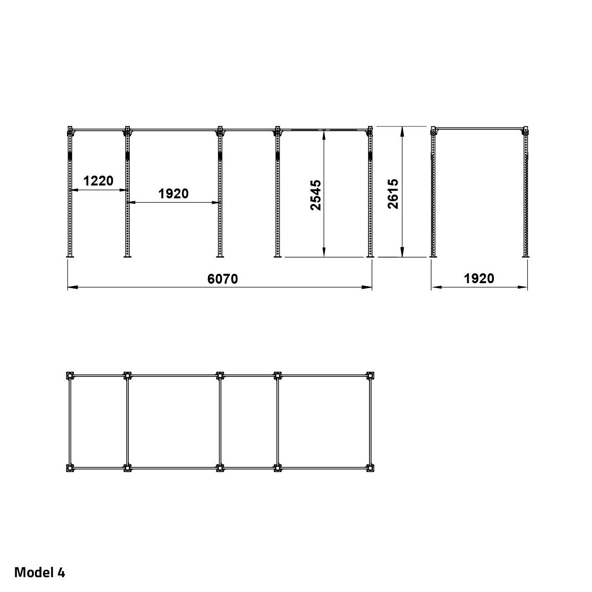 6 x ATX-UPR-260 - Upright Tube 5 x ATX-MON-178 - Integrated Pull-Up Bar 178 cm 2 x ATX-MON-108 - Integrated Pull-Up Bar 108 cm |