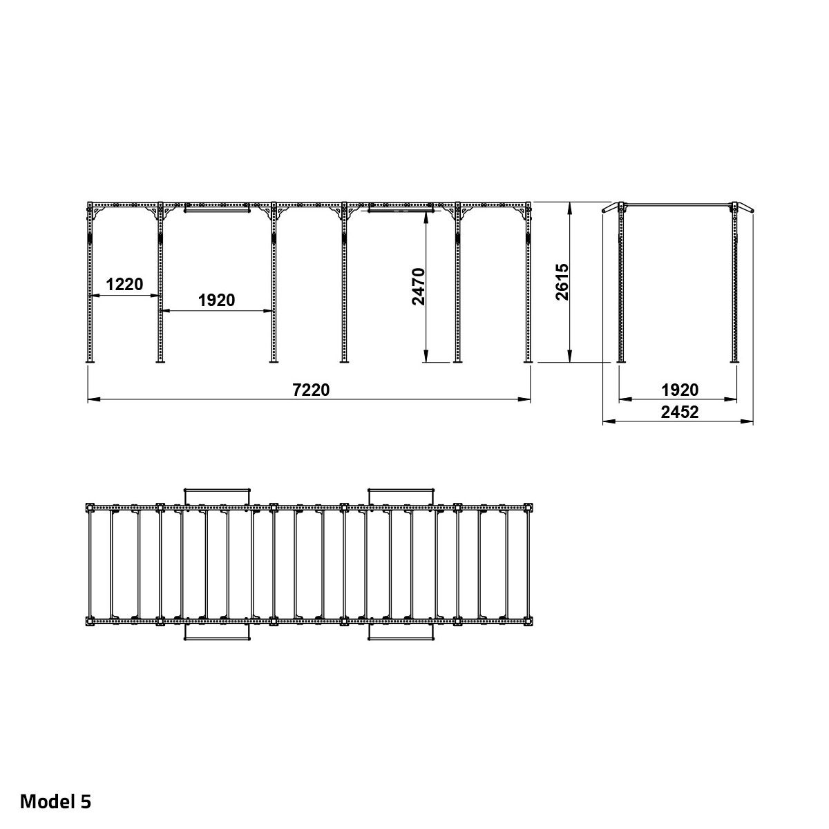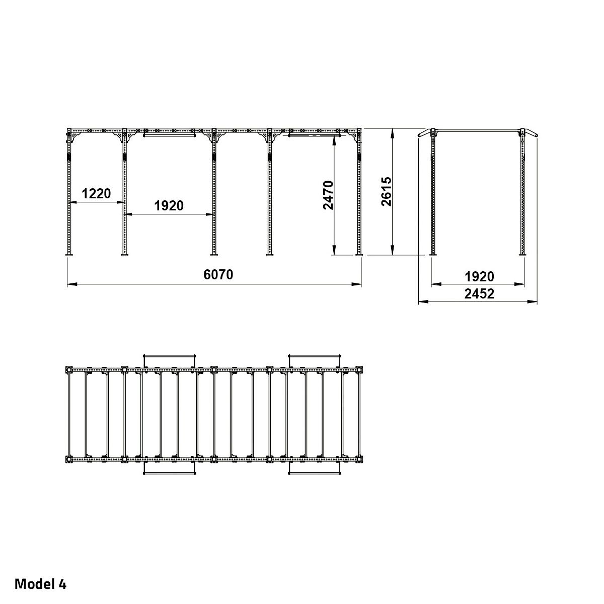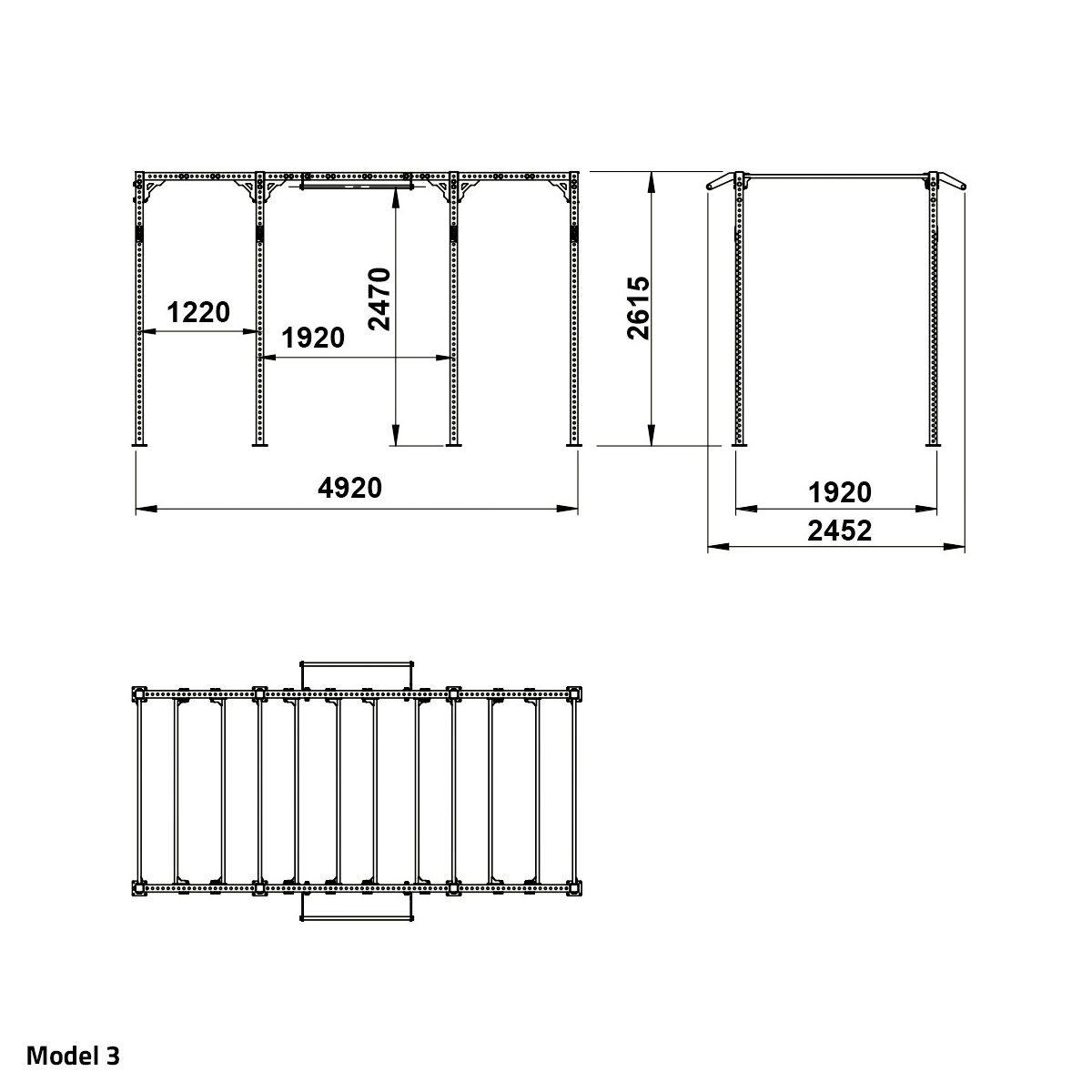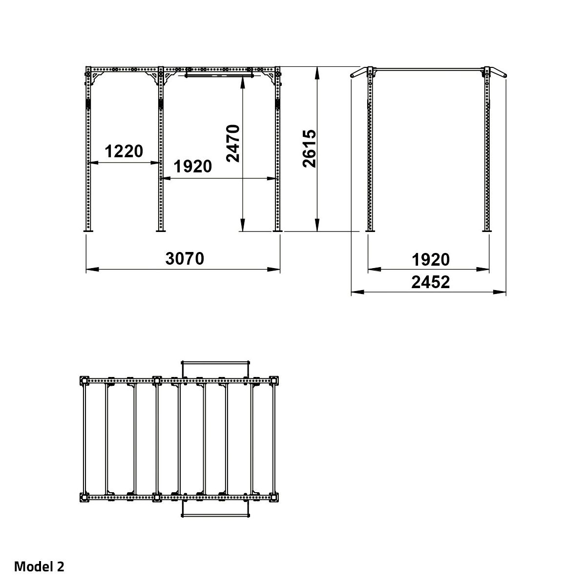 6 x ATX-UPR-260 - Upright Tube 2 x ATX-CRO-108 - Crossmember 108 cm 2 x ATX-CRO-178 - Crossmember 178 cm 9 x ATX-MON-178 - Integrated Pull-Up Bar 178 cm 2 x ATX-OSB-105 - Add-On Pull-Up Bar |