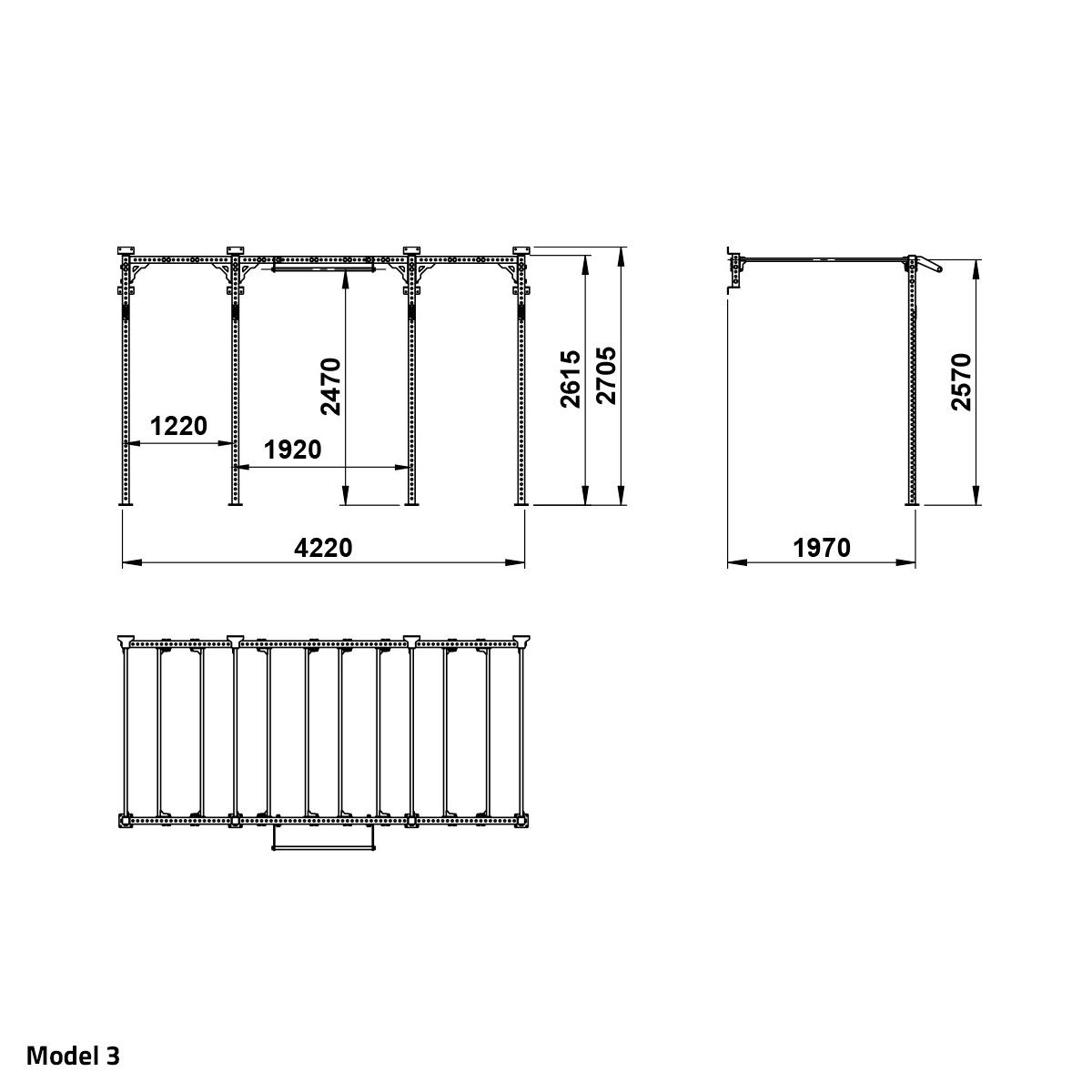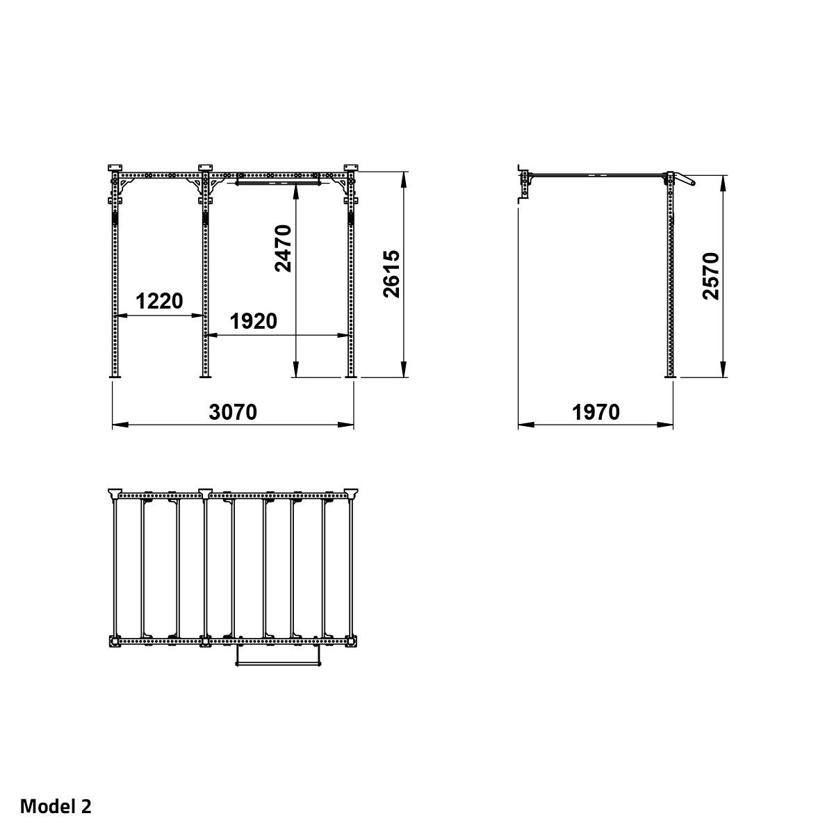 3 x ATX-UPR-260 - Upright Tube 3 x ATX-WCO-700 - Wall Mount 2 x ATX-CRO-108 - Crossmember 108 cm 2 x ATX-CRO-178 - Crossmember 178 cm 9 x ATX-MON-178 - Integrated Pull-Up Bar 178 cm 1 x ATX-OSB-105 - Add-On Pull-Up Bar |