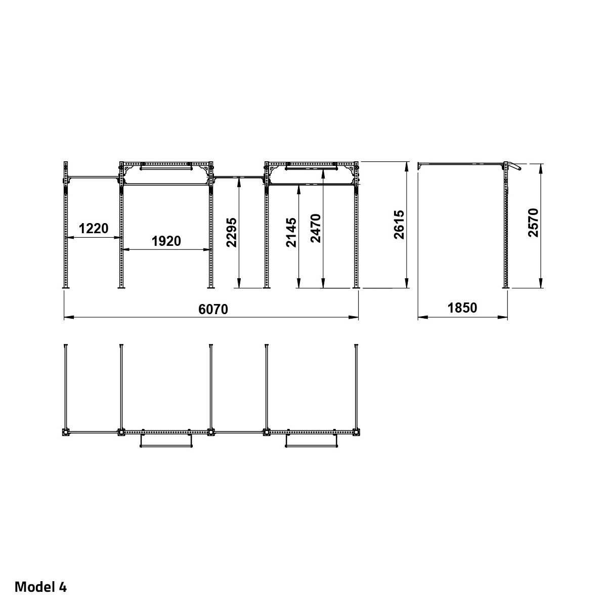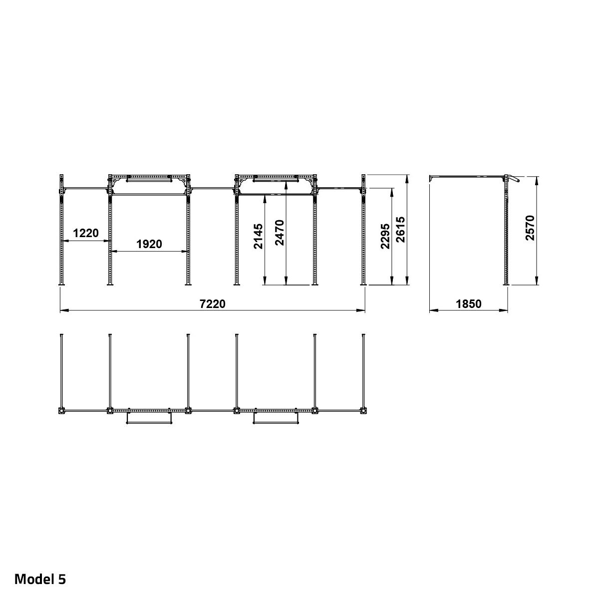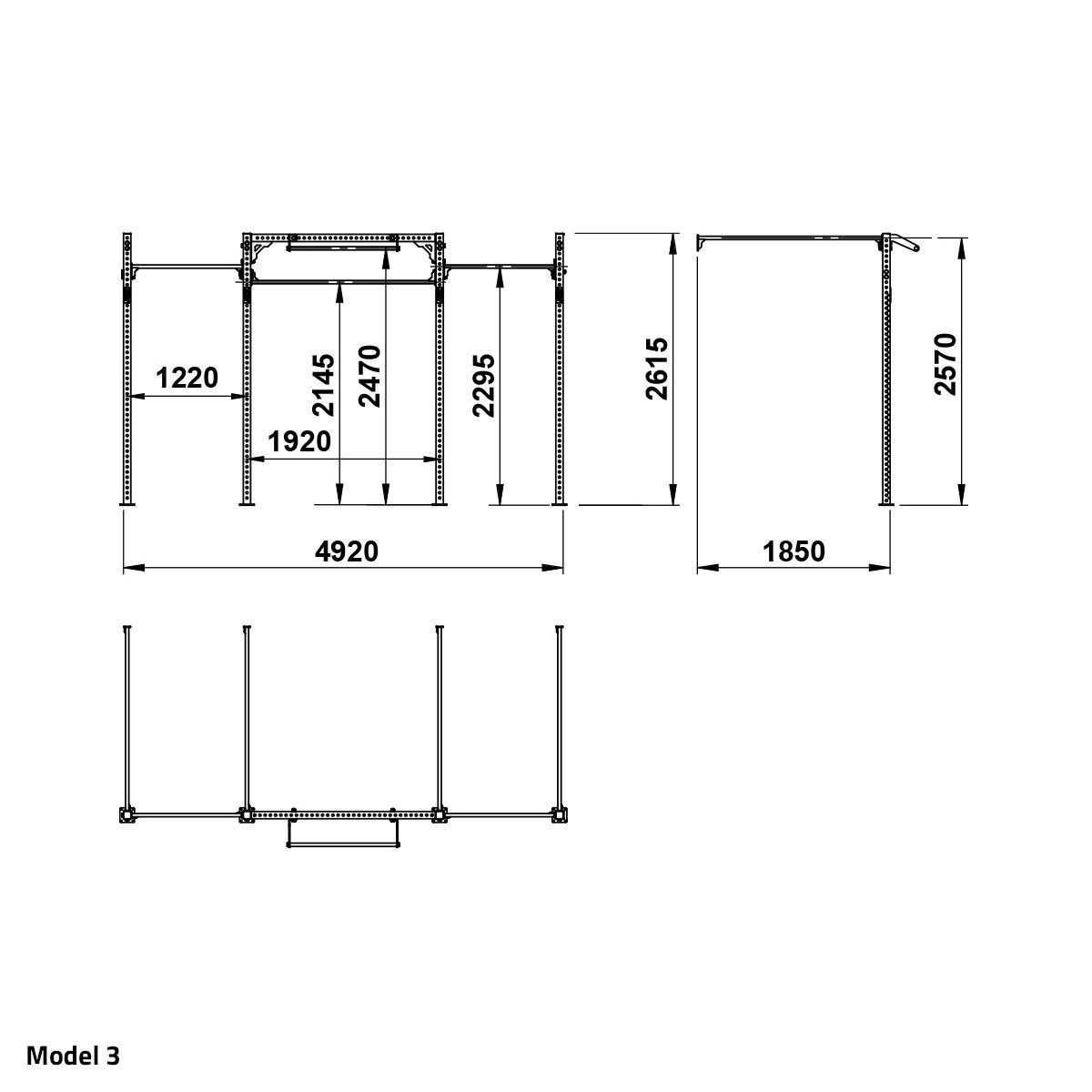 3 x ATX-UPR-260 - Upright Tube 1 x ATX-CRO-178 - Crossmember 178 cm 1 x ATX-MON-108 - Integrated Pull-Up Bar 108 cm 4 x ATX-MON-178 - Integrated Pull-Up Bar 178 cm 1 x ATX-OSB-105 - Add-On Pull-Up Bar |