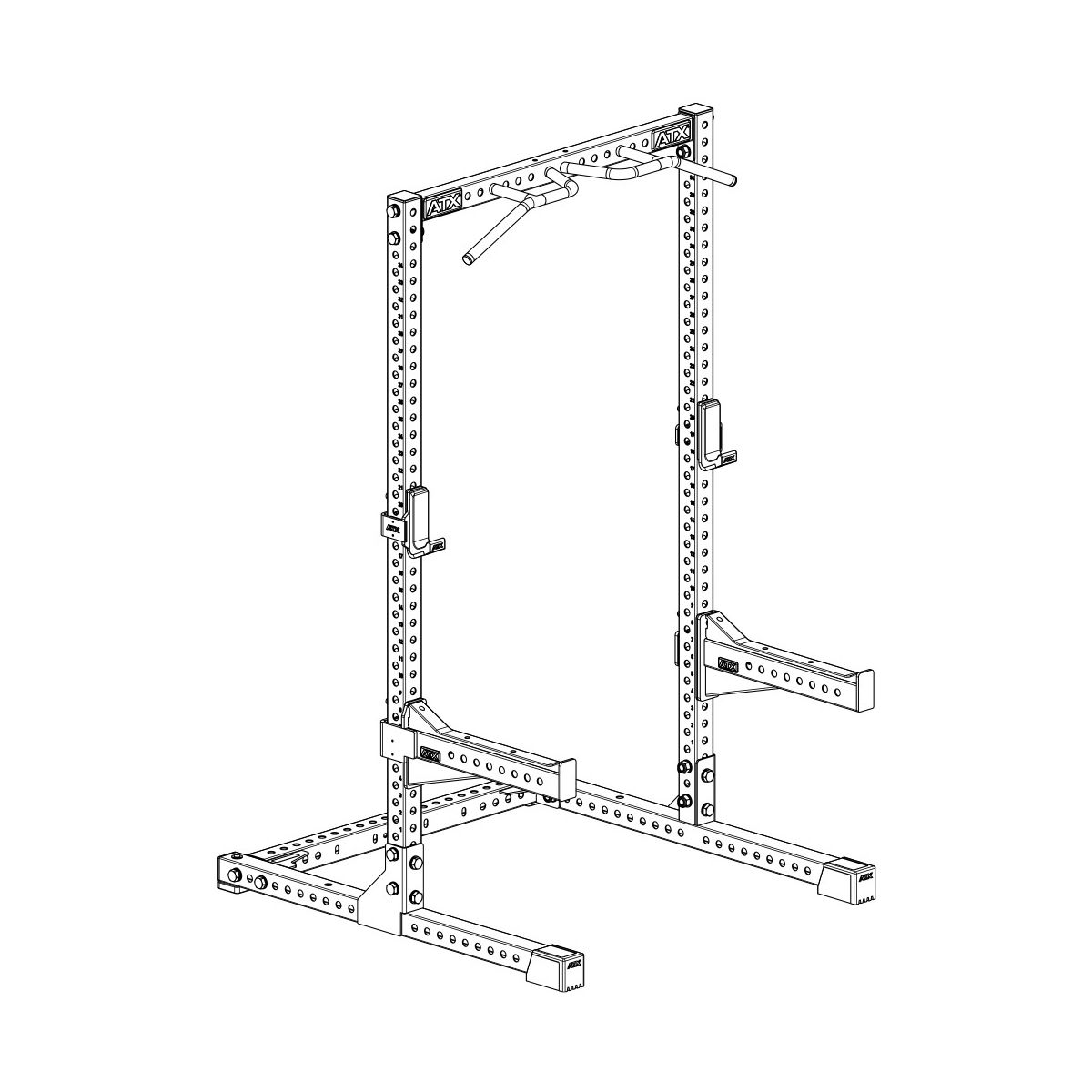 Dit half rack is uitbreidbaar met diverse optioneel verkrijgbare accessoires, waaronder een lat pulley, rack extension, dip bars, bandpinnen, landmine en nog veel meer.