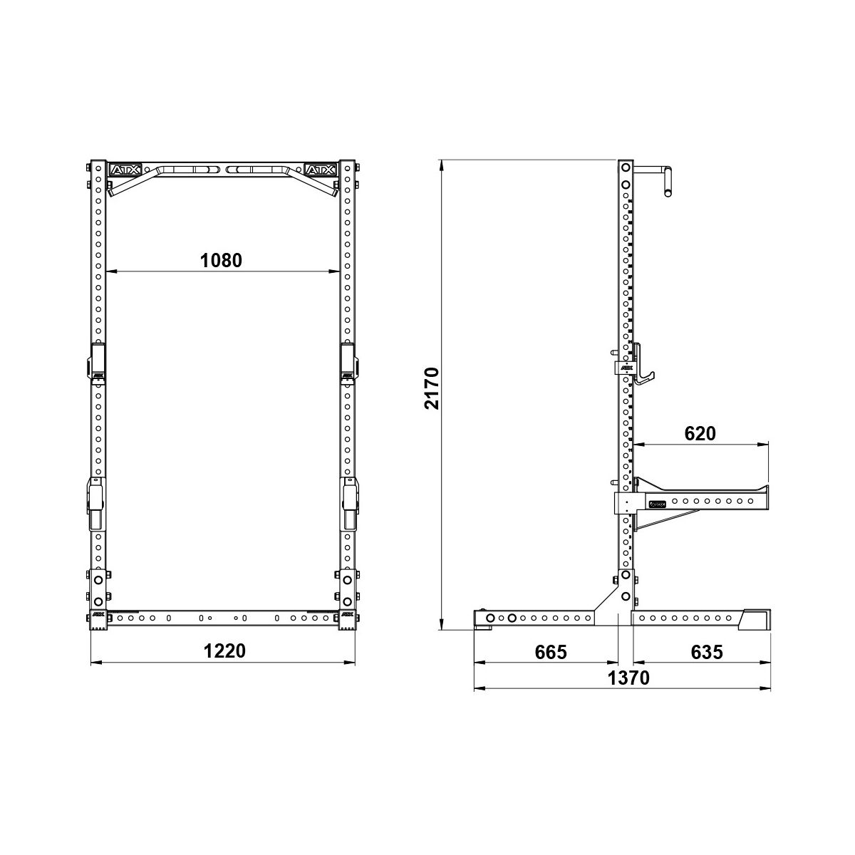 - Hoogwaardig afgewerkt half rack met een hoogte van 217 cm