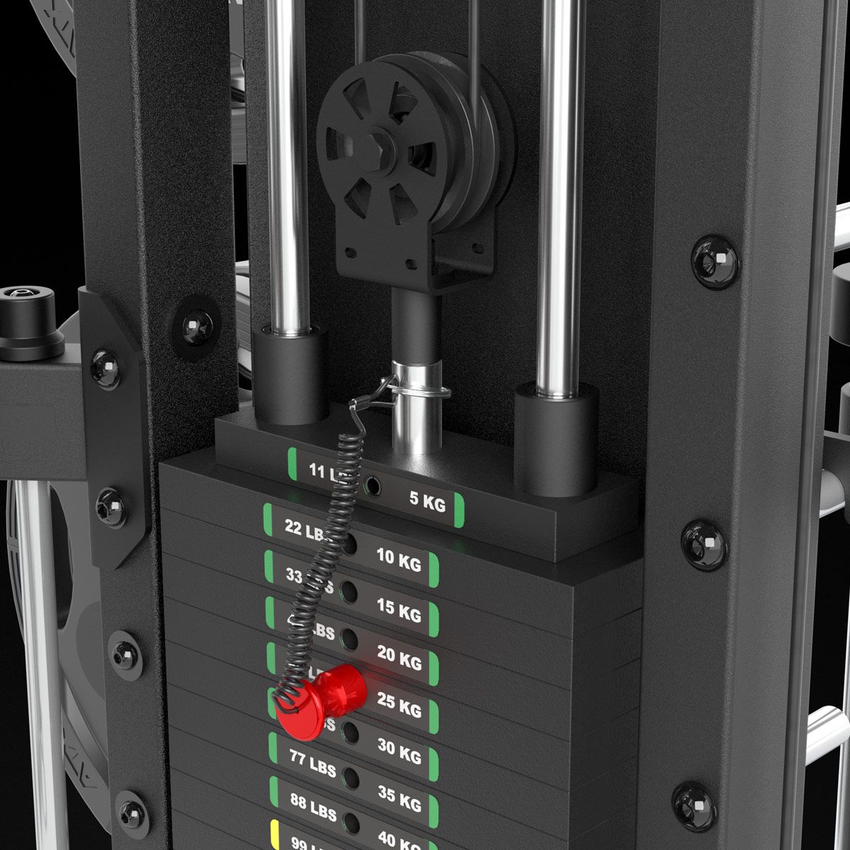 - Inclusief dual cable bar voor lat pulldowns met beide gewichtstapels (max. 110 kg trekgewicht)