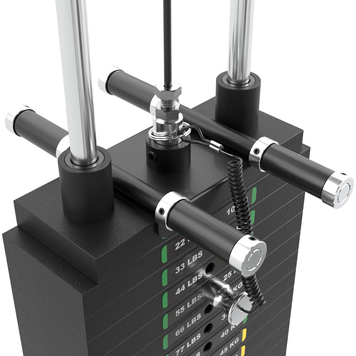 - Met 115 kg gewichtstapel in stappen van 5 kg, voorzien van gewichtsaanduiding