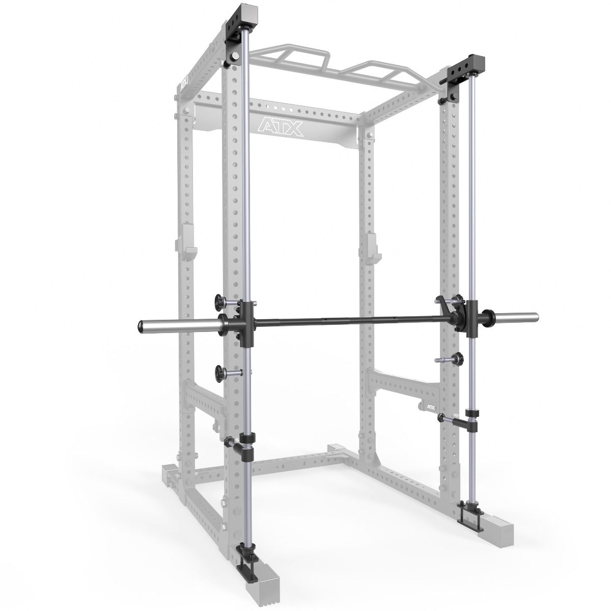Het rack is uitgerust met J-hooks en exta zwaar uitgevoerde flip-down safeties die een veilige training mogelijk maken. De flip-down safeties zijn voorzien van unieke dubbele vergrendelbouten en zijn daardoor extreem zwaar belastbaar. Zowel de J-hooks als de flip-down safeties zijn aan de binnen- en buitenzijde voorzien van kunststof voor het beschermen van het rack en de halterstang en voor het verminderen van geluiden. De multi-grip optrekstang maakt alle relevante gripposities mogelijk en heeft een geïntegreerde fat bar. Tot slot is het rack voorzien van een logoplaat met ATX logo, die bijdraagt aan een maximale stijfheid van het frame. Dit eersteklas power rack voldoet aan de hoogste kwaliteitseisen en is gecertificeerd naar EN 20957 I.II.IV - S voor professionele toepassingen.
