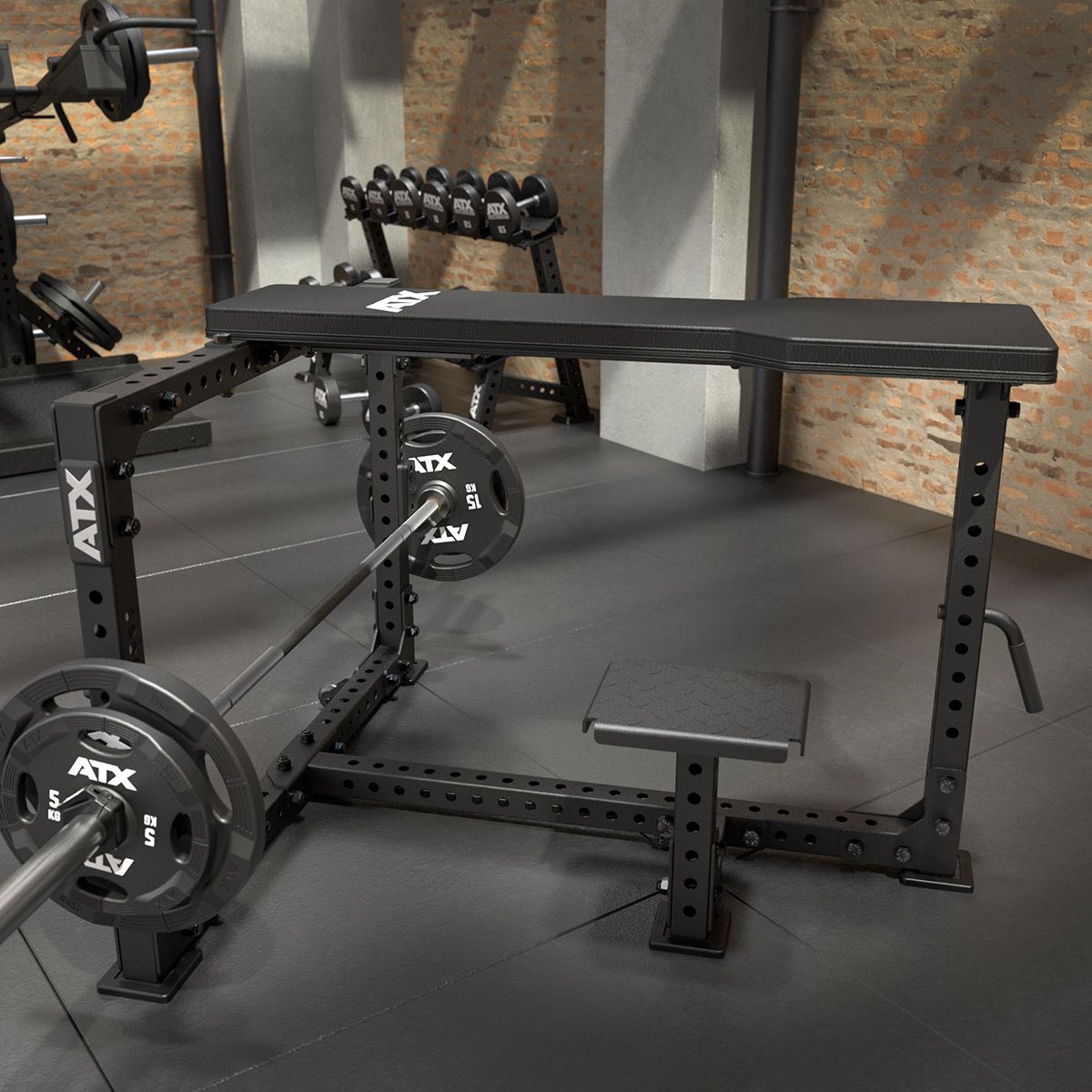 De ATX Seal Row Bench is een klassiek roeibank die het mogelijk maakt om seal row bewegingen (ook wel bench pulls genoemd) uit te voeren met een halterstang of dumbbells. Deze seal row bench heeft perfecte afmetingen en is voorzien van een praktische trede om gemakkelijk op en af te stappen. De J-hooks zijn eenvoudig op 11 verschillende starthoogtes in te stellen. Het strategische ontwerp van de staalconstructie aan de onderzijde van het kussen zorgt ervoor dat de halterstang dichter naar de borst getrokken kan worden. Door de ATX Cambered Swiss Bar te gebruiken is zelfs een nog groter bewegingsbereik mogelijk. Het kussen is verbreed bij de heupen voor extra ondersteuning en een goede positionering. Dit toestel is Europees gecertificeerd naar EN 20957 I.II.IV Class S voor professionele toepassingen.