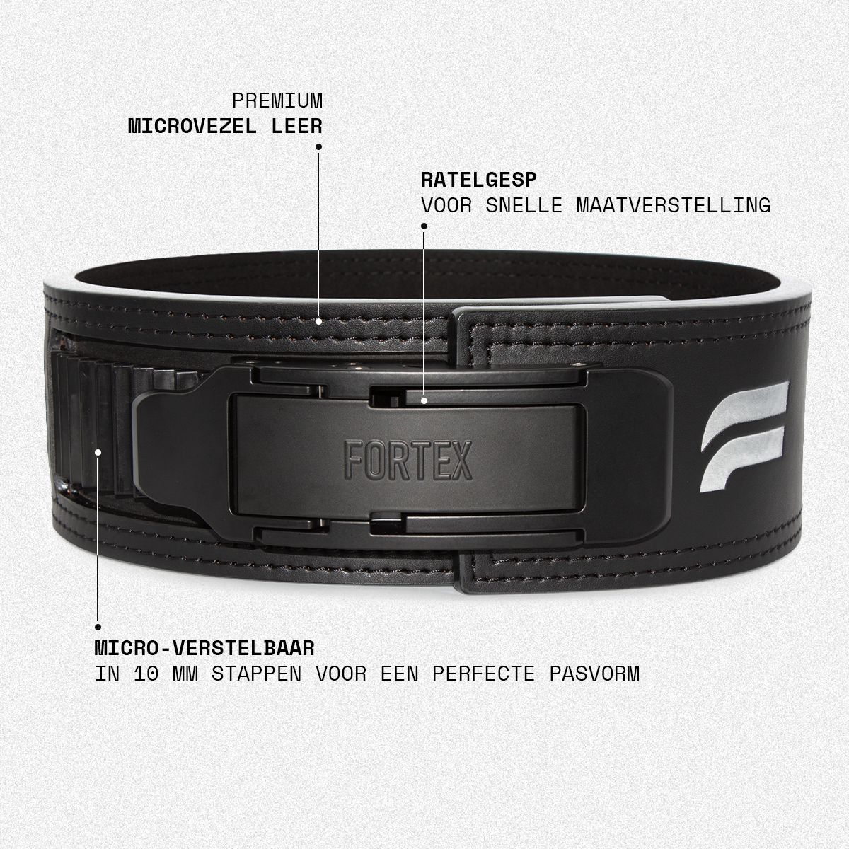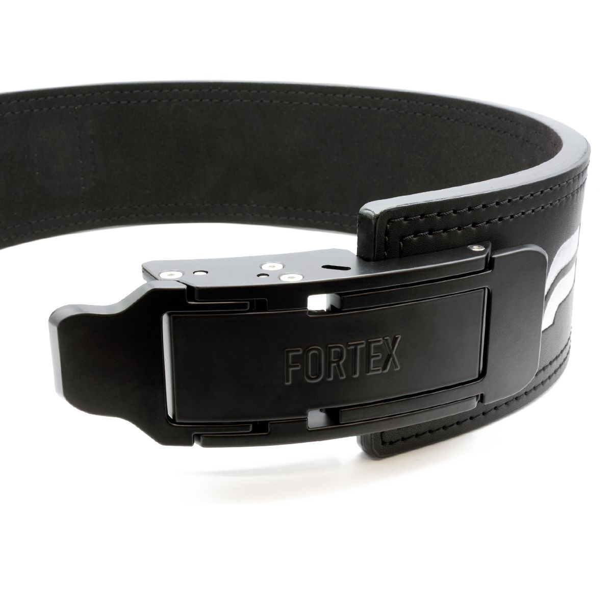 De Fortex Adjustable Lever Belt is ontworpen voor atleten die een exacte pasvorm en moeiteloze prestaties eisen. Deze 13 mm dikke powerlift riem is voorzien van een ratelgesp waarmee je de riem direct strakker of losser zet. Dankzij micro-verstelling in stappen van 10 mm stem je de pasvorm elke keer perfect af. De quick-release hendel maakt het uittrekken van je riem een fluitje van een cent. Deze riem is gemaakt van hoogwaardig microvezel leer, dit materiaal biedt het comfort, de duurzaamheid en de ondersteuning van traditioneel leer, in een vegan-vriendelijk ontwerp. IPF Approved voor wedstrijdgebruik.