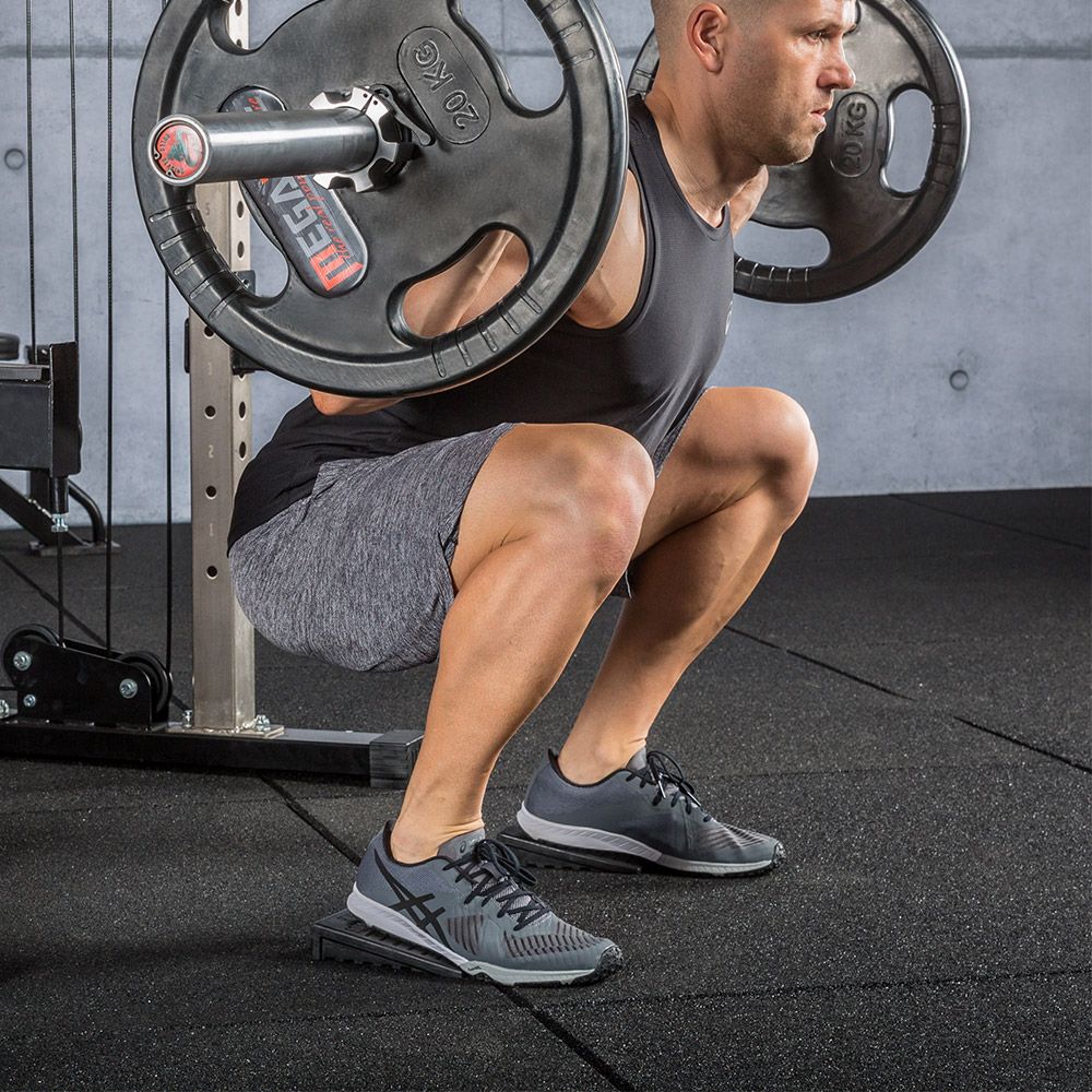 De ATX Mini Squat Blocks maken een optimale en veilige houding tijdens het squatten mogelijk. Door op de helling te staan ontstaat hetzelfde effect als bij de verhoogde hakken in gewichthefschoenen. De verhoging van de hielen leidt tot meer comfort en een betere mobiliteit bij het squatten, waardoor atleten met een slechte enkel of hamstring flexibiliteit toch een diepe hurkzit kunnen halen. De mini squatblokken zijn gemaakt van massief rubber met een hoge dichtheid en zullen zelfs bij zware gewichten niet bewegen of indrukken. Dankzij de compacte afmetingen en het lichte gewicht zijn de mini squat blocks gemakkelijk mee te nemen in een sporttas en perfect te gebruiken op krachttoestellen zoals de ATX Belt Squat Machine en de ATX Leg Master.